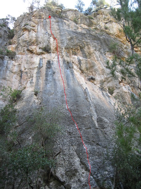 Inicio de placa tumbada de gota de agua muy chulo. Placa final vertical con paso de presa pequeña. 7b suave, puede que 7a+/b.